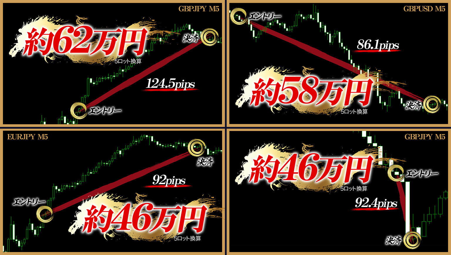FXで稼ぎたいと思っている方にとって、ものすごく大切な要素が「安全に稼ぐ」という部分だと思います。山口ユウタ氏の3パターンを使った手法は、利益と損失の比率をあらわす「損益比率」が、圧倒的に利益が高いんです。トレードすればするほど、安全に利益が増えていくような快感を、ぜひ味わってください。